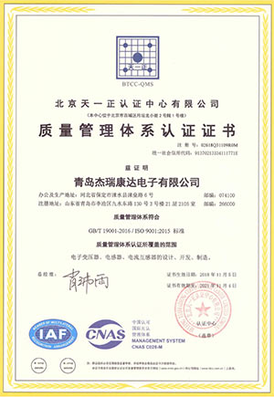 雙體系認證的通過,表明了青島杰瑞康達電子有限公司有實力和能力為客戶提供一流的產品和服務,我們將依托先進的管理體系和強大的技術研發能力,為客戶提供個性化的的解決方案,真誠服務客戶。