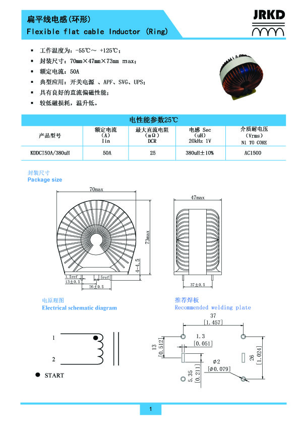 扁平線電感KDDCI50A-380UH -