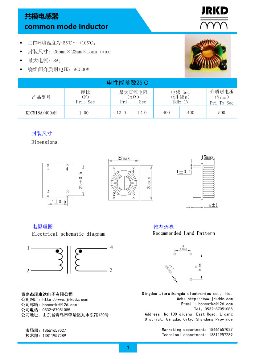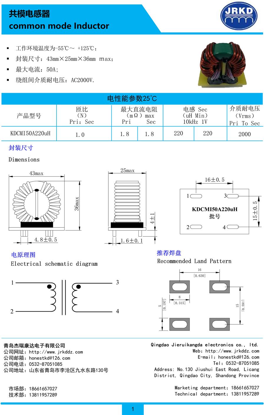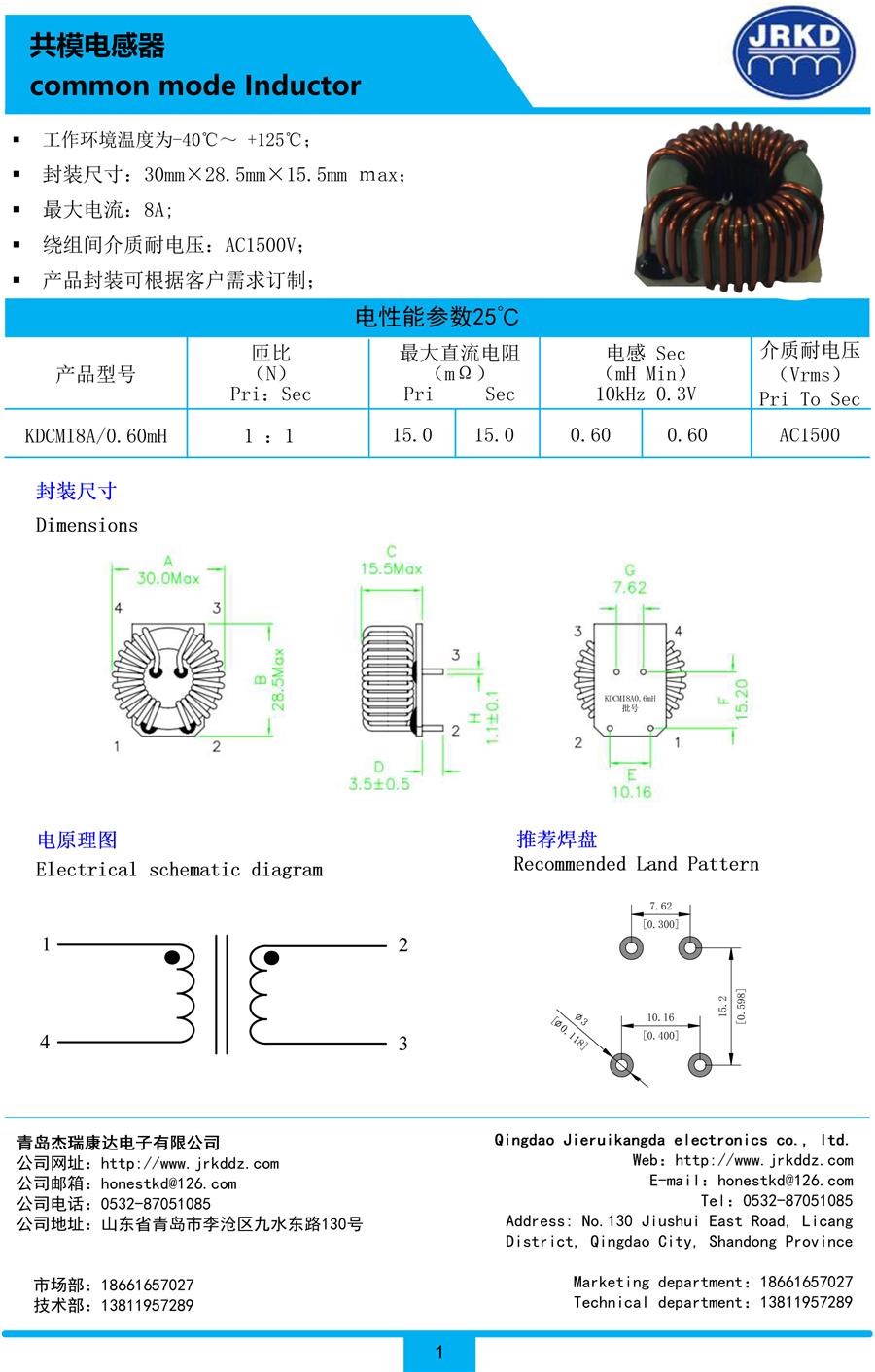 共模電感KDCMI1A/1.0mH