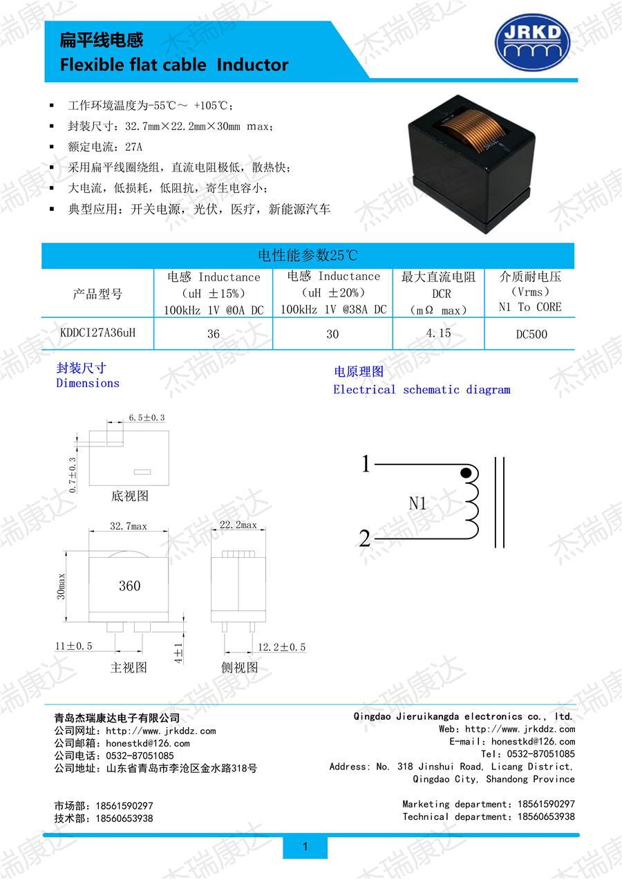 扁平線電感KDDCI27A36uH -
